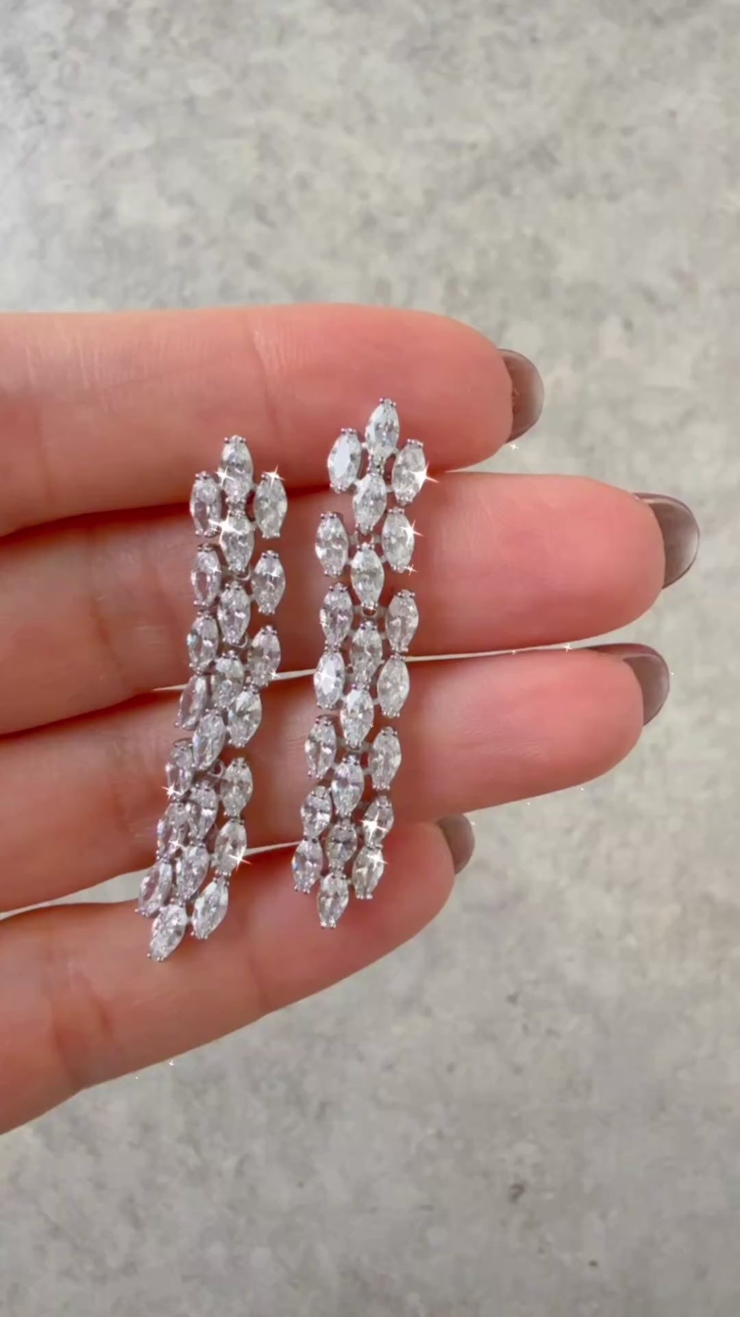 Elongated vertical drop earrings featuring marquise-cut cubic zirconia set in sterling silver 925
