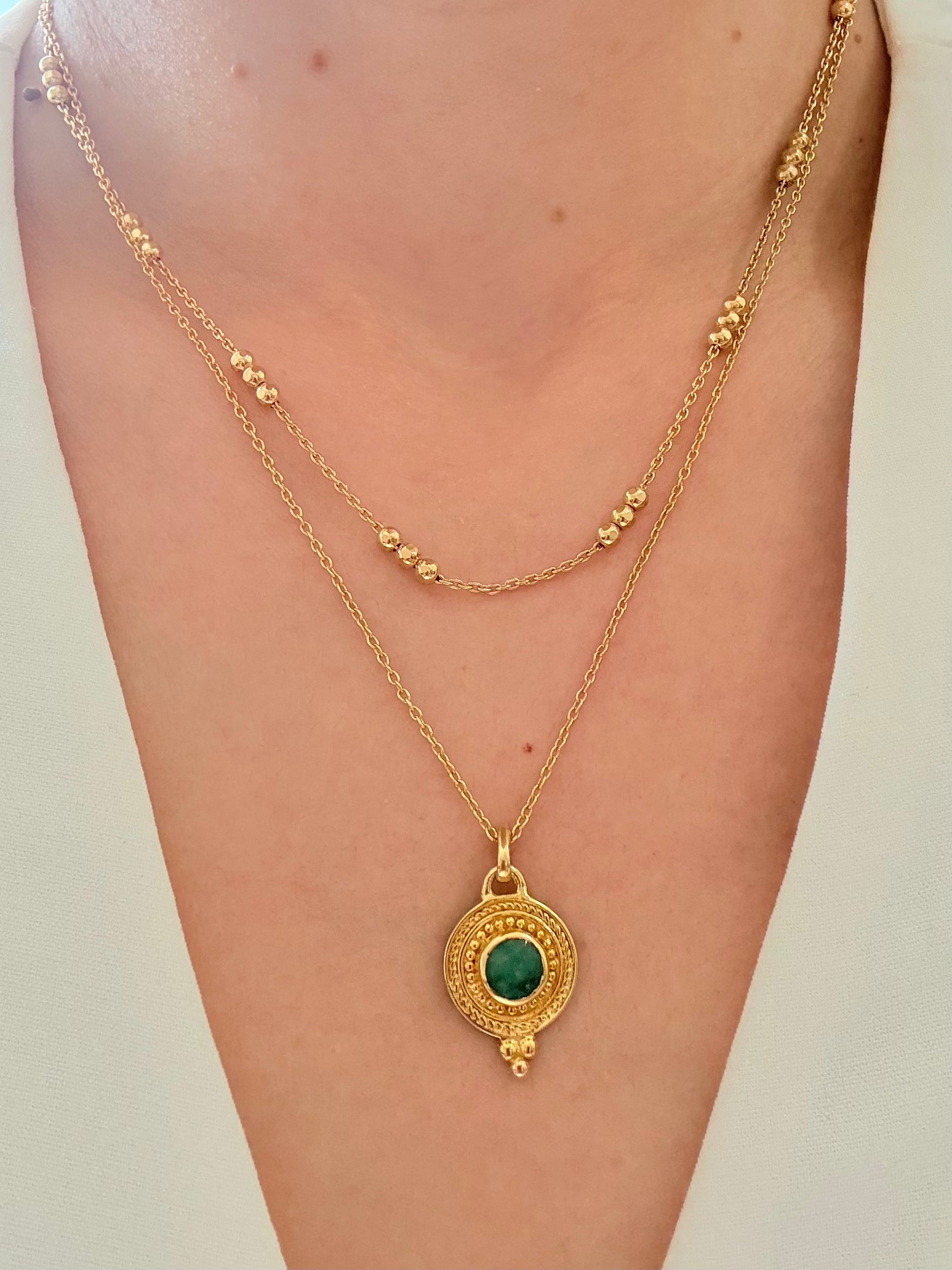 This necklace features a delicate gold-plated chain accented with polished beads arranged in balanced intervals. The design is minimal yet eye-catching — a modern essential that layers beautifully with your other pieces or stands elegantly on its own.