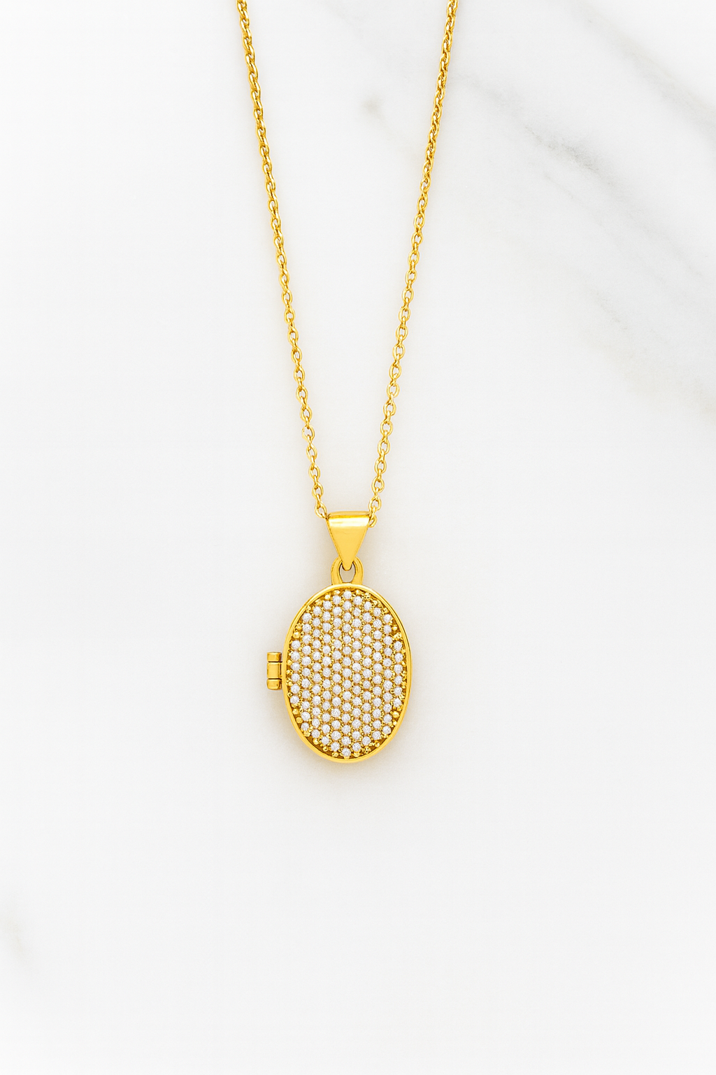 What makes it special: Keep your most treasured memories close with this timeless oval locket. Crafted in 925 sterling silver with a warm 18k gold plating, the locket is surrounded by sparkling zirconia accents that add just the right touch of elegance.