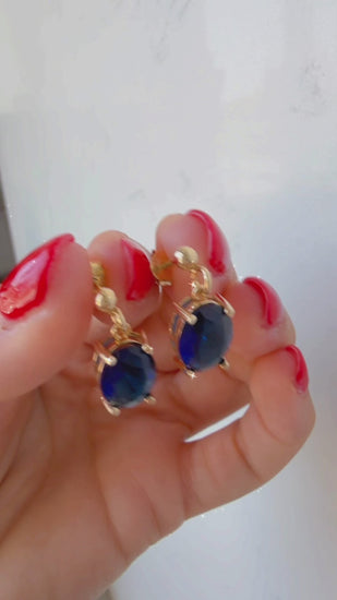 Bring a touch of timeless sophistication to your look with these sapphire-blue oval drop earrings. Each earring features a rich, deep-blue faceted stone securely set in gold-plated sterling silver, designed to catch the light with every movement.