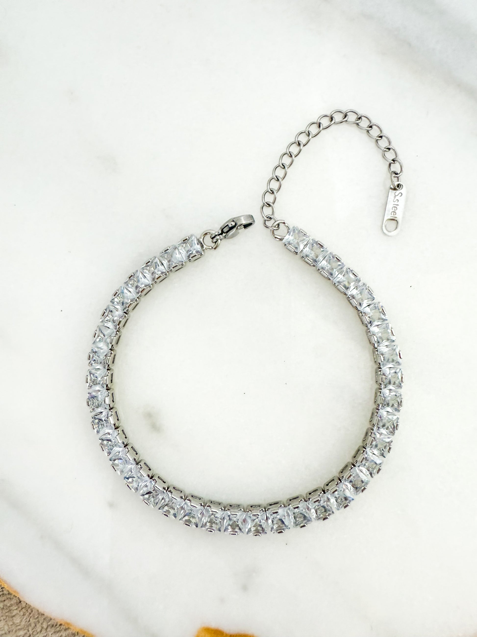 What Makes It Special: A timeless classic with a modern edge, crafted in high quality stainless steel and adorned with a single row of brilliant, faceted stones. Its minimalist design and adjustable fit make it the perfect everyday luxury—subtle enough for daily wear, yet radiant enough to elevate any evening look.