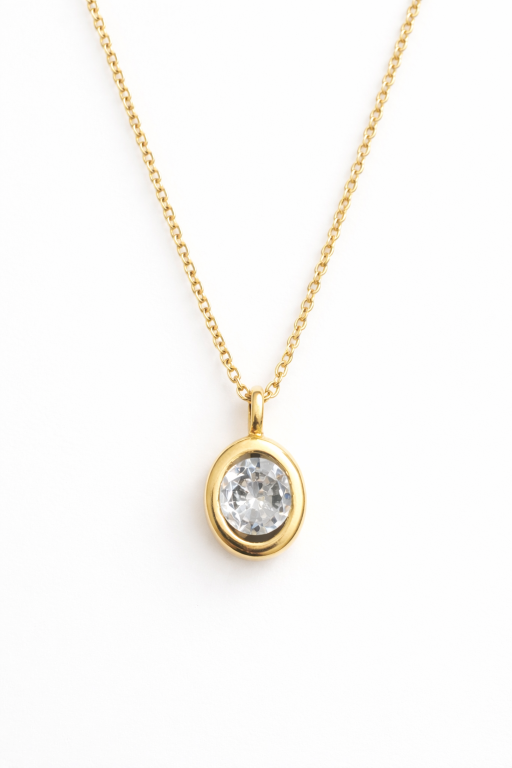 What makes it special: This pendant is all about quiet elegance. The oval-cut zirconia catches light from every angle, while the smooth bezel frame gives it a refined, modern finish. It’s subtle enough for everyday wear, yet polished enough to elevate any look.
